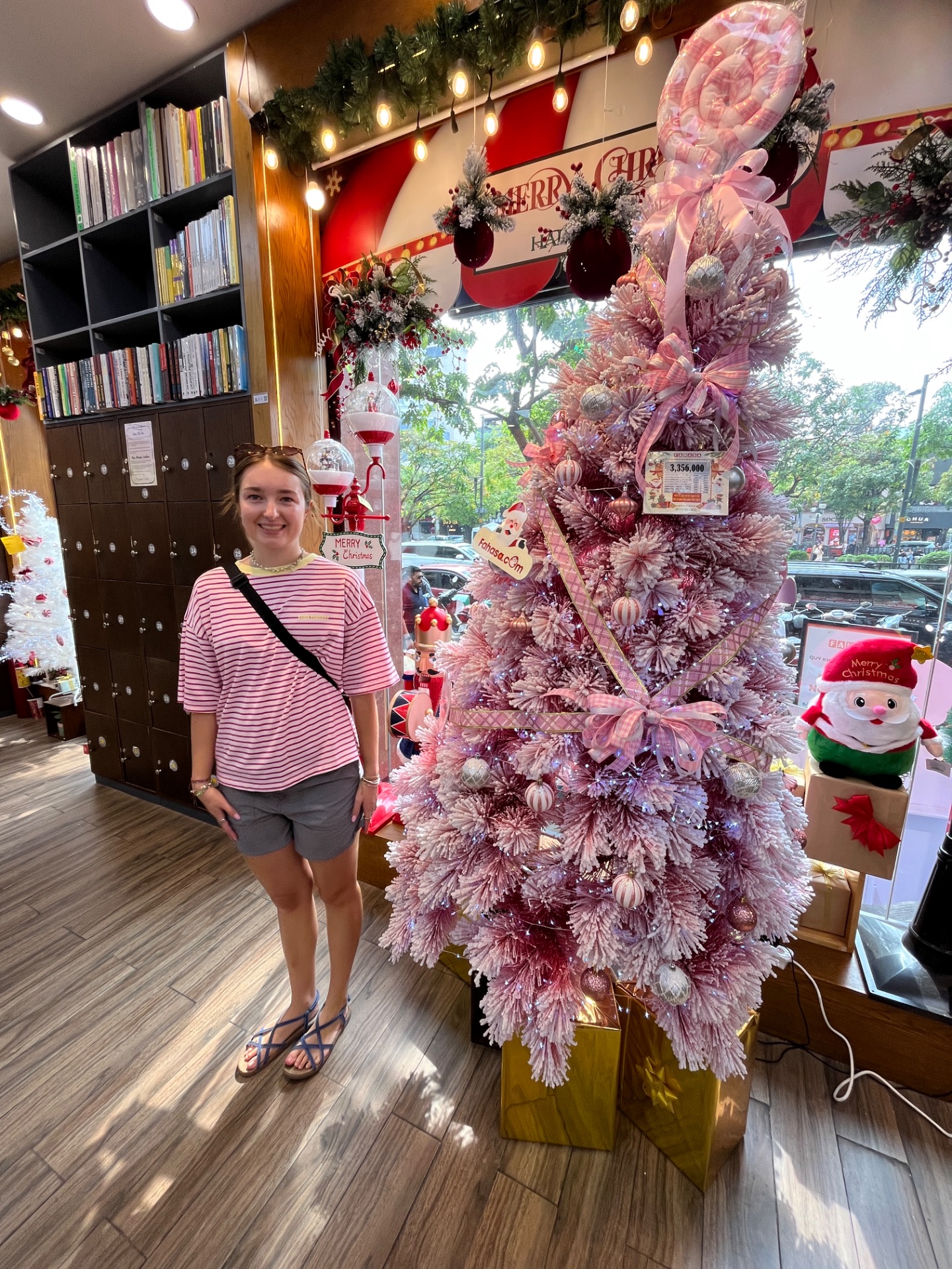 Da klokken blev 12, tjekkede vi ud af vores hotel og tog hen mod det luksus hotel vi skulle bo på med mor og Alberte. Turen derhen gik dog ikke helt smurt. Vi blev sat af midt på gaden 3 km fra hotellet fordi at adressen på Grab ikke var korrekt. Vi bestilte dog bare en ny Grab, denne gang gik det bedre. Hotellet var ingen skuffelse, en hel lejlighed med to soveværelser og to badeværelser. Efter lidt tid tog vi ud i byen på jagt efter en bogbutik. Vi fandt en kæmpe en af slagsen. Her udpegede jeg alle de bøger jeg godt kunne tænke mig i julegave.